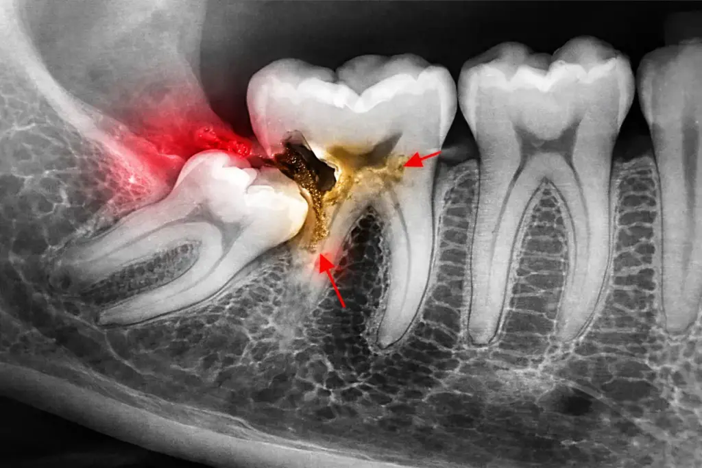 Damage to adjacent teeth seen on X-rays