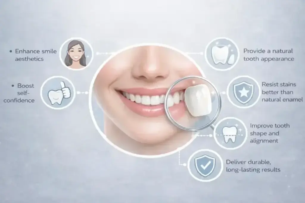 Porcelain veneers are a premium cosmetic dental solution designed to enhance the appearance of your smile. At Sri Tatva Dental Care, we offer custom-made porcelain veneers that deliver natural-looking, long-lasting, and confident smiles.